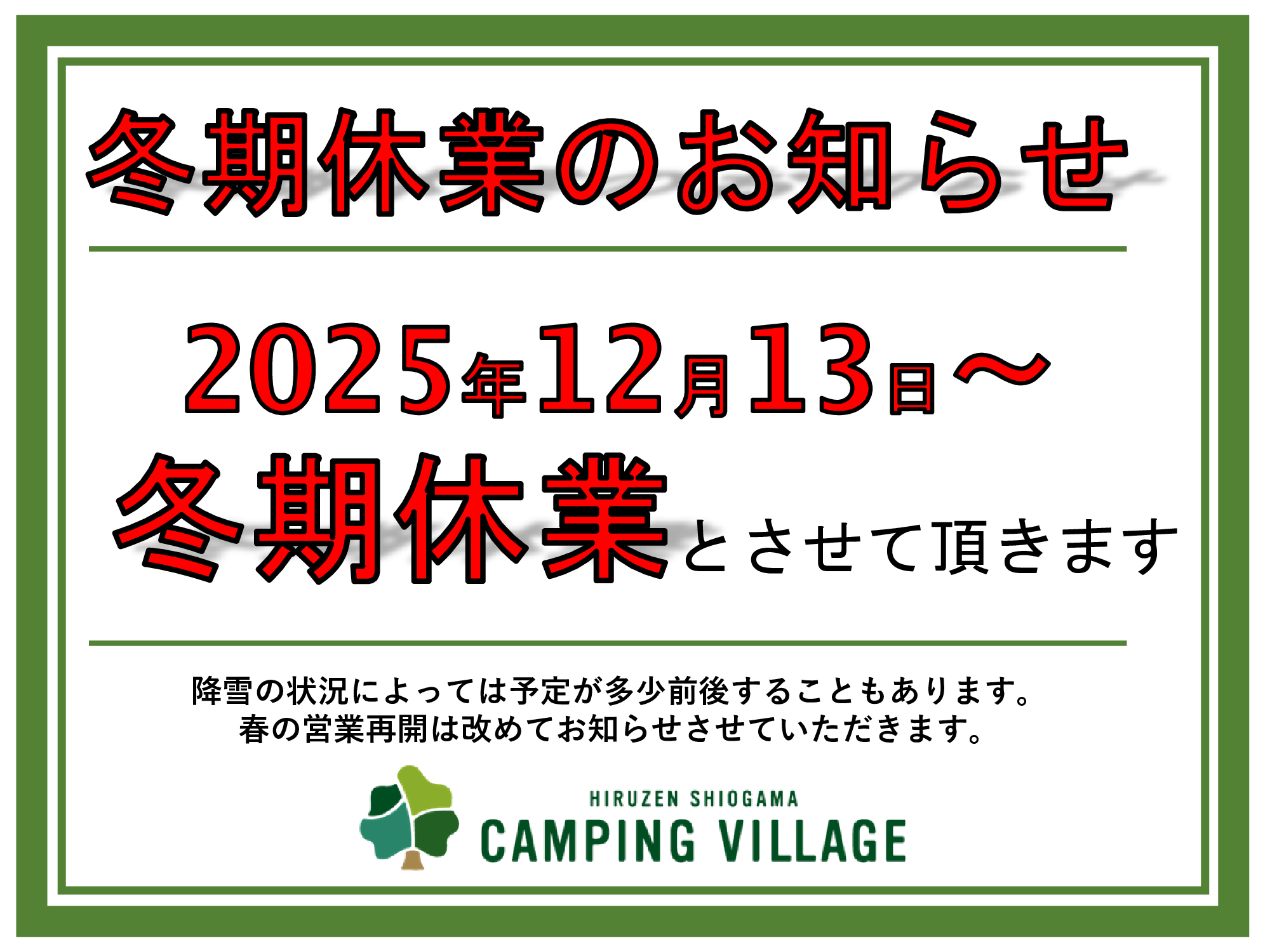 いつもひるぜん塩釜キャンピングヴィレッジをご愛顧いただきありがとうございます。